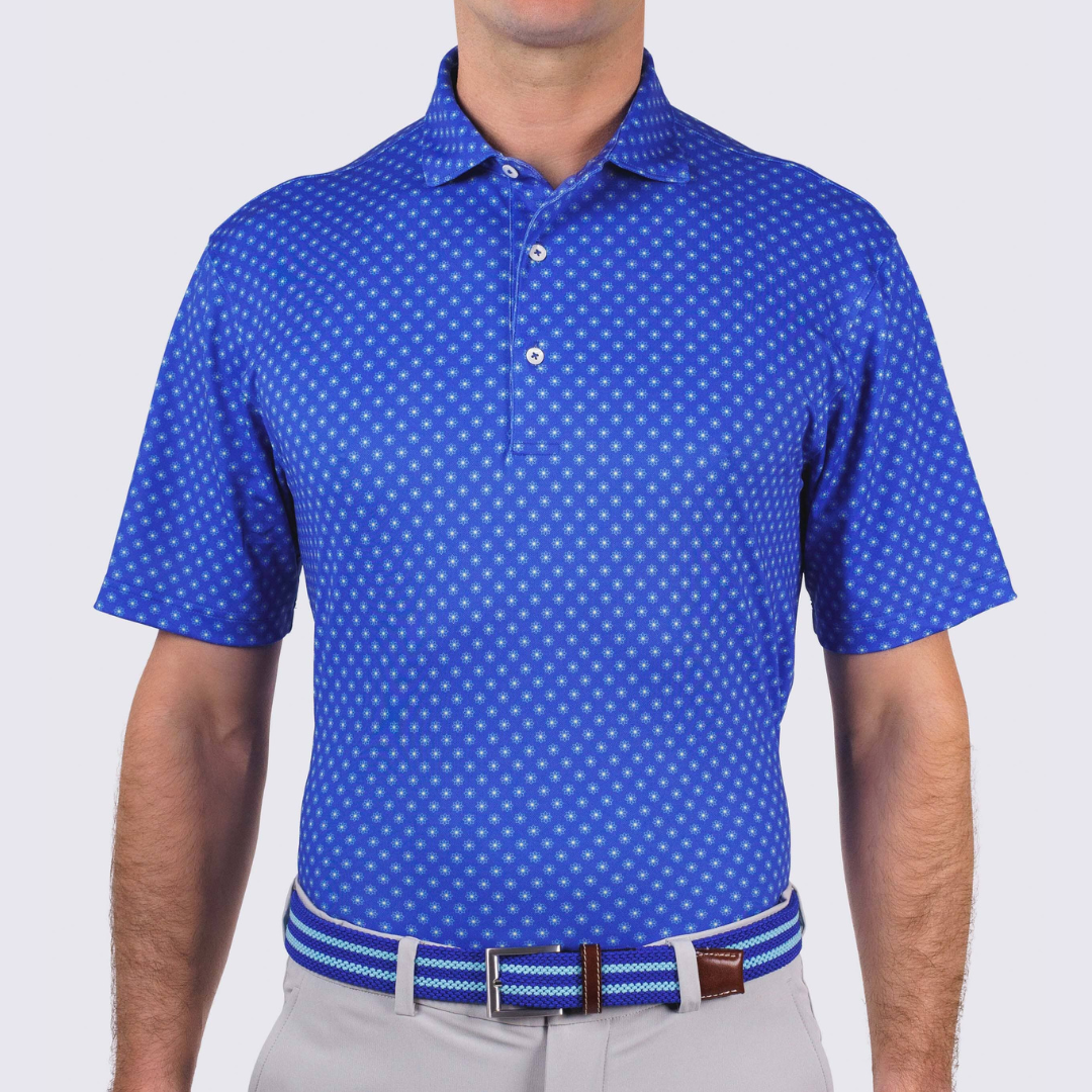 With a stylish two-color flower pattern on a solid background, the Newman Performance Polo offers a subtle yet eye-catching addition to your wardrobe. Made with our signature four-way stretch and moisture-wicking fabric, this polo is perfect for both work and play. Crafted with 94% polyester and 6% spandex for maximum comfort and breathability.